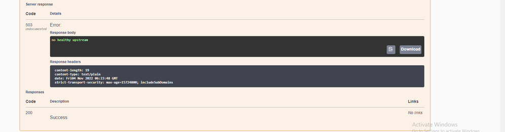 sbnVisitor3 years agoUndocumented 503: No healthy upstreamGetting an error like this frequently on an api to upload files to my storage. This is not a permanent issue since multiple execution will result in a success. Anyone with a similar issue please help.