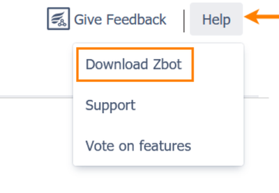 The ZBot can be downloaded directly from the Help menu located on all Zephyr-owned pages in Jira.
