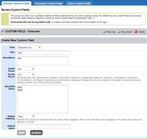 It says that the Team edition supports 2 fields for "Review Custom fields", but I only have one, "Overview"