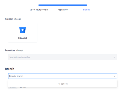 I need some assistance with the Cucumber for Jira plugin, specifically when I am setting up living documentation using Bitbucket cloud. I am able to select a project, but not any branches. The options always come back as No Options. I know for a fact there are branches in the projects but am unclear on how to get them to show up in the dropdown. Below is a screenshot for clarity.