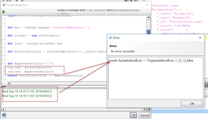 I think it is because you variable "ActualschoolList" is an empty Groovy List object, but your variable "ExpectedchoolList" is the literal string "[]" these are two different things, thus the assertion fails. If you are expecting an emty list, try defining "ExpectedchoolList" as follows: