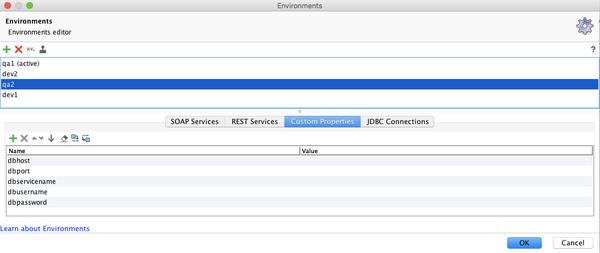 - What is the "correct" way of adding a DB connection to a specific environment? If I want my JDBC request to automatically select a specific DB connection without having to update my test step when switching from dev1 to dev2, how do I do that?