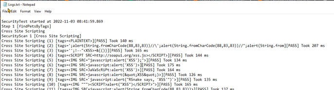 When I run a Security Scan, such as Cross Site Scripting, I'm not finding a detailed log for each test. I find a summary for each test indicating that a pass or fail was the result, but no details about each test.