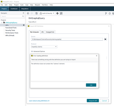 Failed to create Graphql project / API definition in ReadyAPI 3.43.1 version