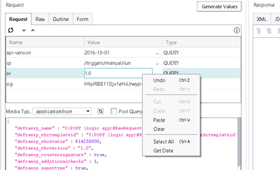 3. Within the 'Request' form of the second test step request within the UUID_REF parameter, right click in the 'Value' field (to launch the context menu) - see screengrab