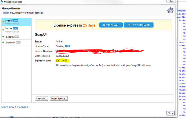 groovyguyCommunity Hero9 years agoOpen ReadyAPI and go to HELP -> License Manager. That window will show you your applicable license expiration dates per product.