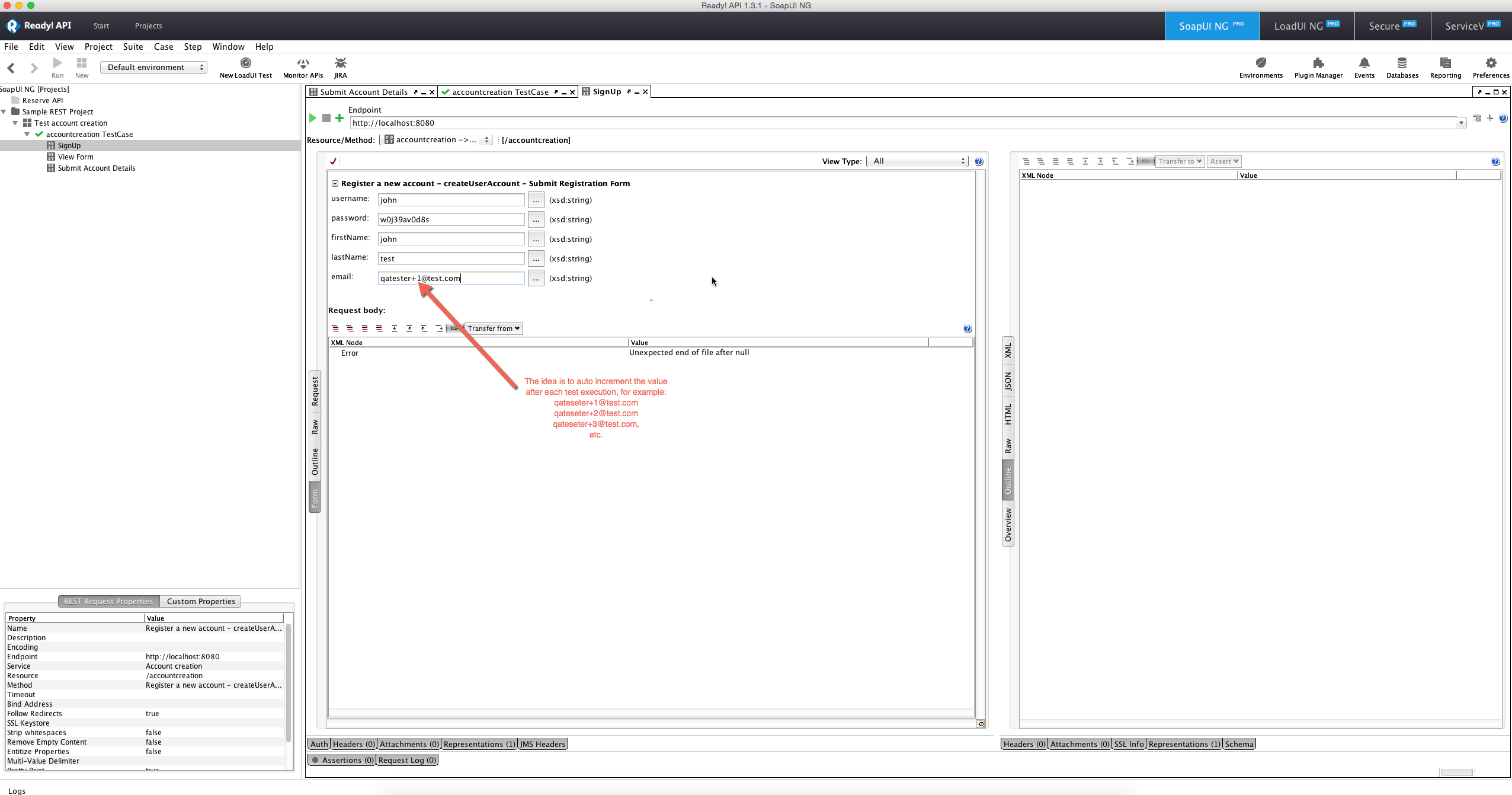 String generateUsername(String user) { date = new Date().format('MMddyy-HHmmss') user = user + "+" + date + "@test.com" } user = generateUsername("qatester") testRunner.testCase.setPropertyValue( "email", user ) log.info user- nmraoCommunity Hero