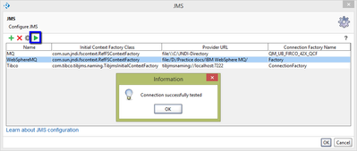 >> If I open JMS (Configure JMS) I press green arrow on the configs, I get no message so I think its working.