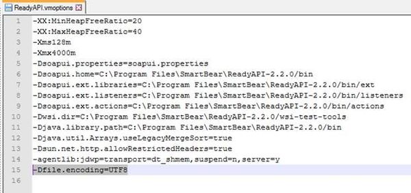 Add “-Dfile.encoding=UTF8” in the file ReadyAPI.vmoptions located in bin directory “C:\Program Files\SmartBear\ReadyAPI-2.2.0\bin”