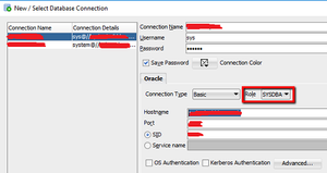 Hi, We normally connect to our DB with a SysDBA role using SQL Developer. but when I try to set a JDBC connection, it seems that there is no Role field in there. Using the default login gives ...