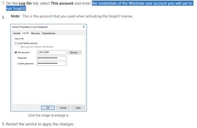 I installed jenkins server locally on my machine right now to try the plugin. But I am stuck on "Liscence not found" issue. I followed https://support.smartbear.com/readyapi/docs/general-info/licensing/troubleshooting/jenkins.html but I have a quick at finding the "the credentials of the Windows user account you will use to run SoapUI." I have a fixed liscence file given by my company but not any credentials to run or install soapui pro.