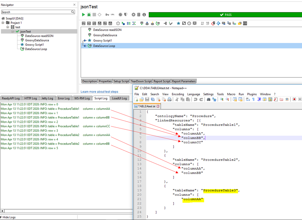 I am trying to read a JSON file in as a DataSource test step (see JSON below). The number of nodes of the properties (named "columns") varies with each tableName in the JSON file. Is it possible to...