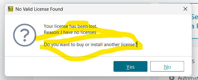 I have a license that is good till sometime 2027. However, company has goven me a new laptop top I copied the installer to new laptop and installed application. When I open application I get license issue. I follow link and see my license. Go back to application it shows it I click finish and then I get this message. How do I resolve this?