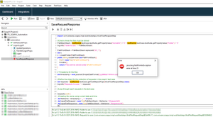 I though that maybe the Groovy script tried saving the request / response too soon, but even when adding delay steps of 5 seconds I'm still getting the NPE.