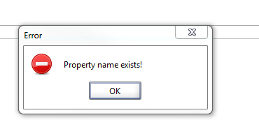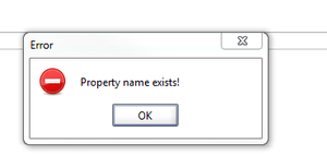 Ctrl V is a paste command. The error message probably means that you are pasting a property name that already exists.