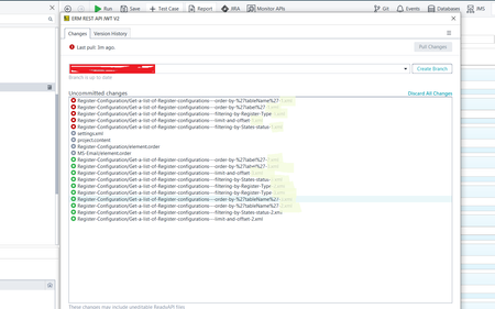 My colleague uses Mac and after he does some changes to the repository, for some reason it starts adding these suffixes to some test filenames and then when opening the repository in ReadyAPI on Windows machine, make some changes and want to save changes to repository, then these changes in filenames appear in ReadyAPI Git > Changes window.