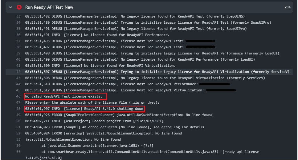 I just can confirm having a similar issue, but when starting ReadyAPI, it is often not being able to fetch the license and I have to go through the process of selecting the license again and only then it works. Not sure if it's related but I think there's a general issue with licensing.