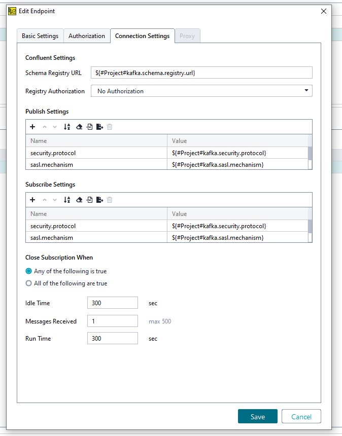 I am running readyapi from command line and passing a properties file as an system option. The properties are successfully resolved in most of the cases (rest api endpoint, database connection), the only problem seems to be in the Kafka configuration, specifically in the "Connection Settings" tab.
