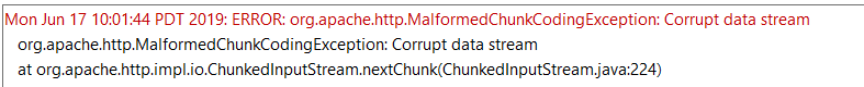 The error logs show Corrupt data stream though the request hits successfully and response is also generated. The same request works fine with Postman.What needs to be enabled/disabled/set for this to be successfully generated.