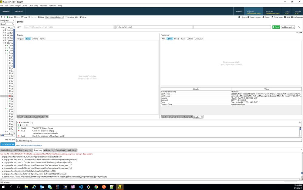 Further analysis of this made me go through the header Transfer-encoding:chunked because of which the response is recieved in chunks and SOAPUI pro isnt able to handle the chunked response and gives error in the logs. How can I do a workaround for this