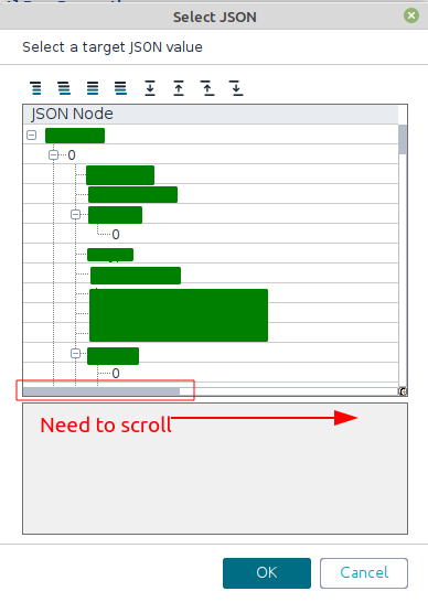 Window size is set to display only 'JSON Node' column. 'Value' column is hidden and I need to scroll to the right so it would be visible again.