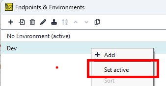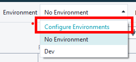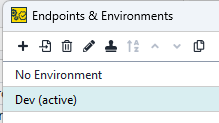 *I tried with the below in my Project->Save Script and this works if the active environment is already set to "Dev", but fails with a bunch of errors if the active environment in the GUI is set to, for example, "Test" (the switch is actually made though to "Dev").
