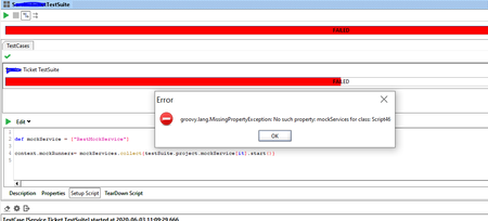 Hi All,   I am trying to start rest mock service via groovy script in test suite. I am getting the error using below script   def mockService = ["RestMockService"] context.mockRunners= mockServi...
