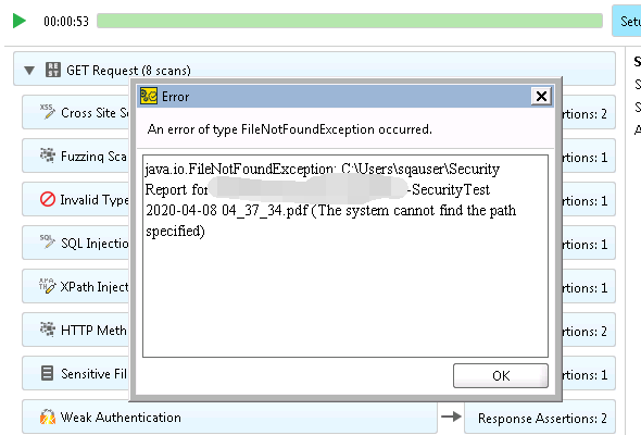 I have find the reason. It is caused by the SecuriTest Name that contain character '/'.