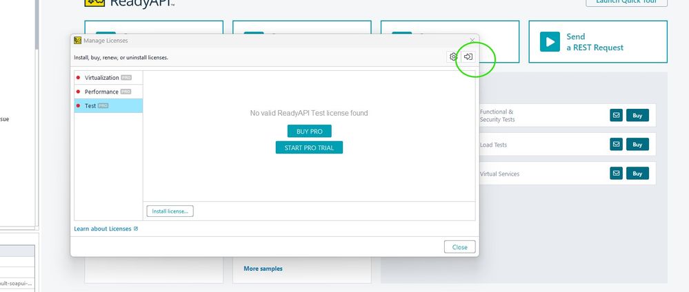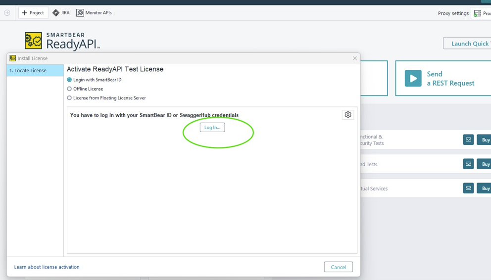 Unable to authenticate license in Ready API Login button unresponsive