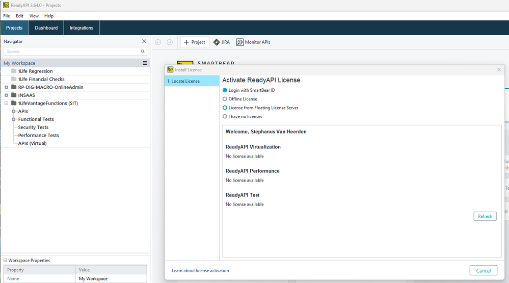 this fixed it. Unable to authenticate license in Ready API Login button unresponsive | SmartBear Community