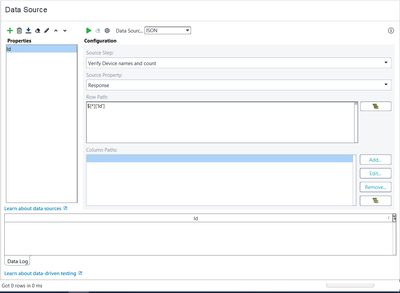 I am trying to get the ID of each device from this response in the Data Source step using JSON path. When I enter $[*]['Id'] I get 0 rows. However, if I enter something like $[1]['Id'] then I get the corresponding ID correctly.