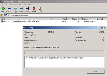 Next I run the HTTP Request. After it's finished I noticed a zipfile in the specified folder with the xml inside.