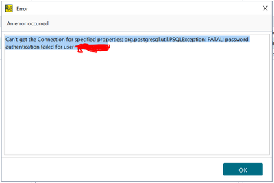 Can't get the Connection for specified properties; org.postgresql.util.PSQLException: FATAL: password authentication failed for user "xyzzzz"
