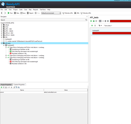 As an aside, if you are using project properties to change server names, have you investigated the Environments functionality. This will allow you to easily configure Ready API to switch between a different set of end points, DB connections,etc. eg, Dev, SAT, UAT.