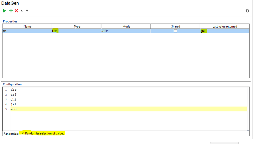 For my test I just generate 1 line at a time, and I need this to be a random selection between abc and def.