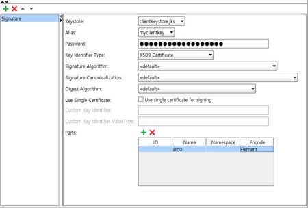 Decrypt Keystore : client keystore jks file Signature Keystore : client keystore jks file Password - password of client's private key