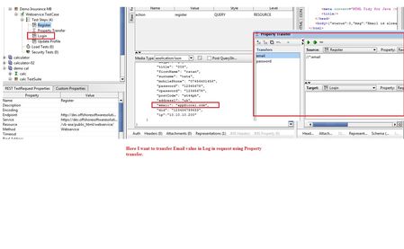 Here already I set up property transfer test step.