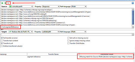 Hello people, I am new to SOAPUI, I hope any of you could help me. From the following XML I'm trying to get the  <ns3:segmentReference> VALUE with a PROPERTY TRANSFER teststep. For that I clicked i...