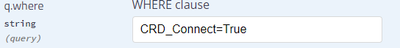 I am trying to locate the correct syntax for my query : CRD_Connect=True, have tried some different things, but can't seem to get it to work.