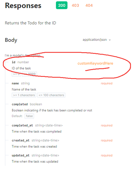 Hi, we want to display a custom keyword on fields of models in the api documentation, like in the attached...