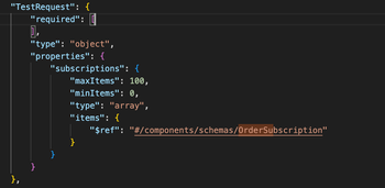 using ArraySchema annotation on field "subscriptions" of class TestRequest which is used as DTO like this :