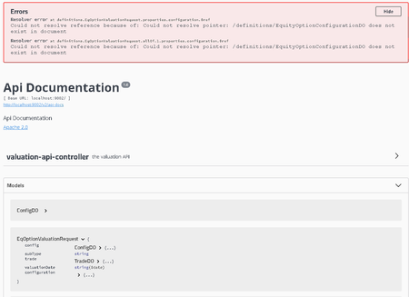 I would expect EquityOptionConfigurationDO to be shown up in Models section as it is listed in Components/Schema section but that doesn't happen.
