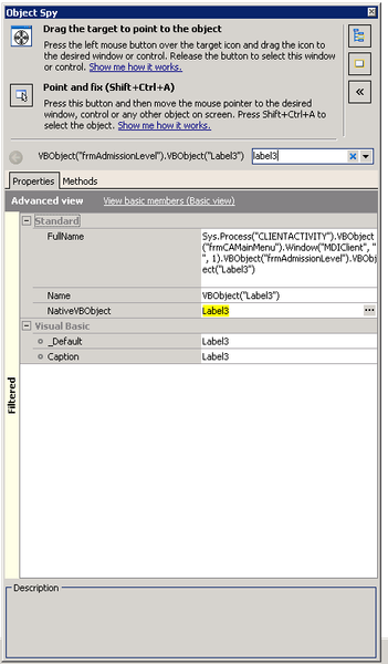2>The button shows the name "HIS" on it but when I spy the Caption and NativeVBobject is shown just as Label3.