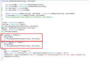 hello Receives weekend dates from today and only logs if today is the same as the weekend date. If it's not a weekend, I've narrowed down the script to click a specific button. It's a weekend today, ...
