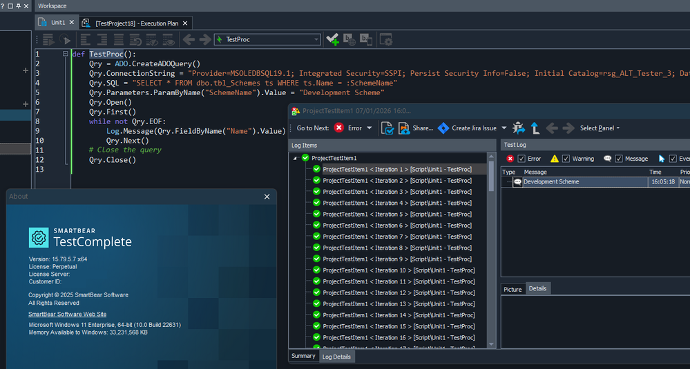 def executeQuery(queryString, queryParameterListOfDictionary = []) : query = ADO.CreateADOQuery(); try : query.ConnectionString = getDbConnectionString(); query.SQL = queryString; # Map query parameters and values. for queryParameter in queryParameterListOfDictionary : for key, value in queryParameter.items() : query.Parameters.ParamByName(key).Value = value; query.Open(); results = convertQueryToListOfDictionaries(query); return results; except Exception as e: Log.Error(str(e)); finally : closeDbConnection(query);Here it is