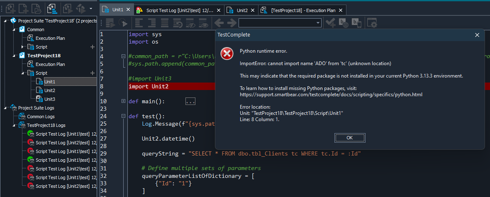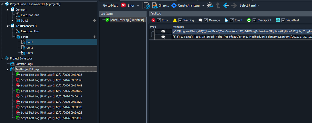 However, if I restart TestComplete or rerun test() in Unit1, then it passes