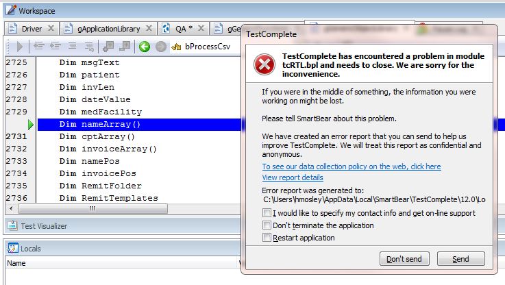 It looks like I’ve found the case you are talking about. You have created it for TestComplete 10.6. Could you please resend this fresh TestComplete 11 crash report to our Support Team and mention the previous one? I think it should help our R&D team investigate the issue.
