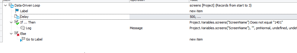 I have created a Data Driven loop with an if condition