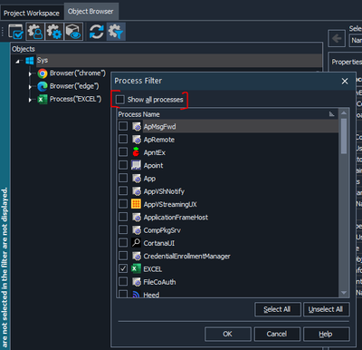 Ah, yes. Forgot about that setting. I rarely filter my processes because I never know what I'm going to be working with.