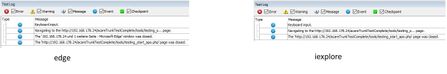 During my investigation of the problem I had to notice more unpleasant behaviours of TestComplete with Edge. Objects are highlighted at different locations than they are visible on the screen, in object browser alert windows are not existent and the object browser does only show completely black pictures of the whole object hierarchy of the edge process.